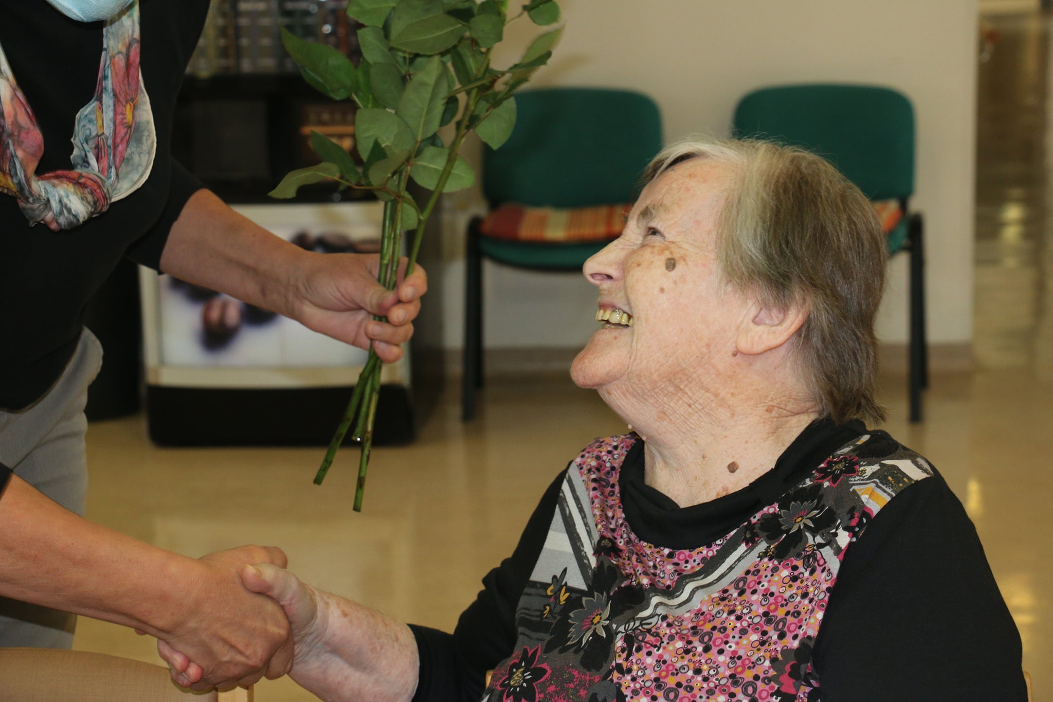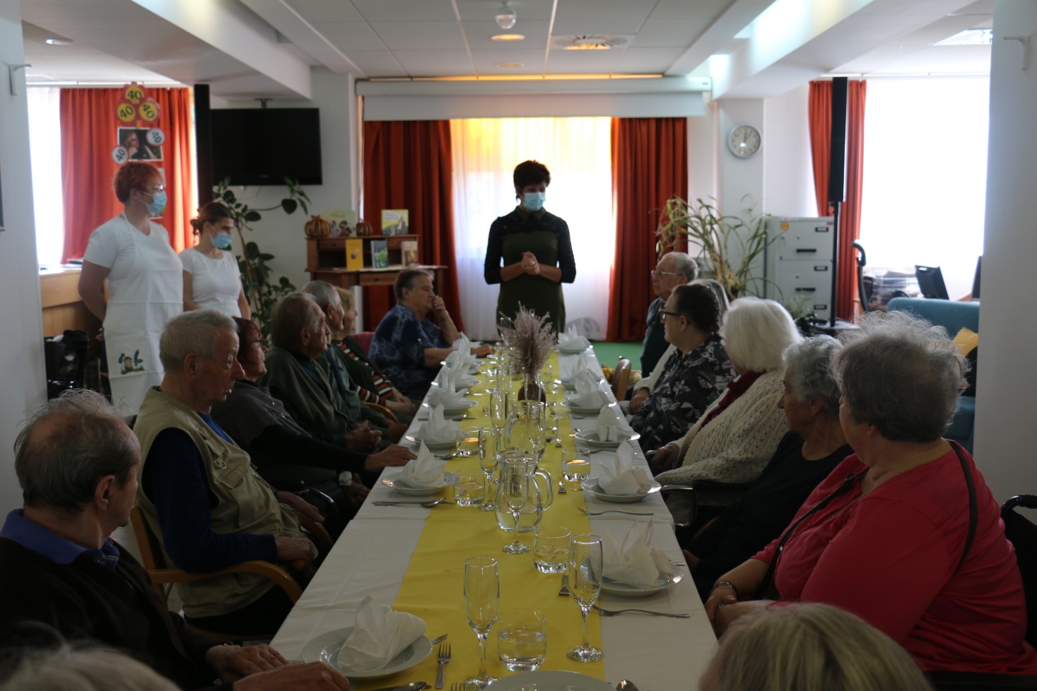 Individualno pa voščimo vsakemu stanovalcu posebej na dan njegovega rojstnega dne. Voščilo izvede vodja enote Marjana Kamnik in animatorka Maša v času kosila.